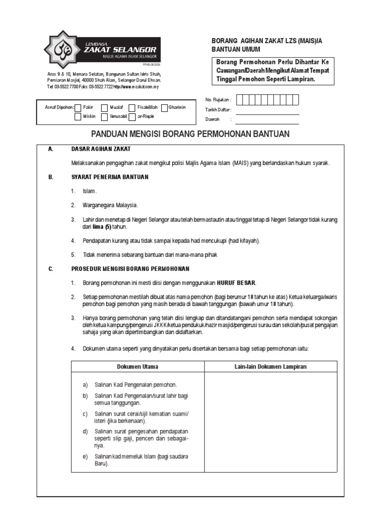 Borang Bantuan Zakat Selangor Borang Umum Pdf
