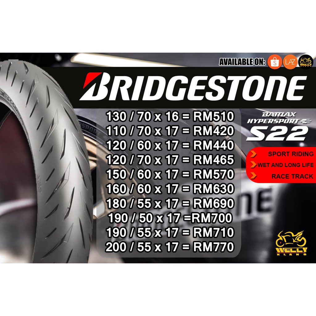 Bridgestone Battlax S22 Tyre Tayar Shopee Malaysia