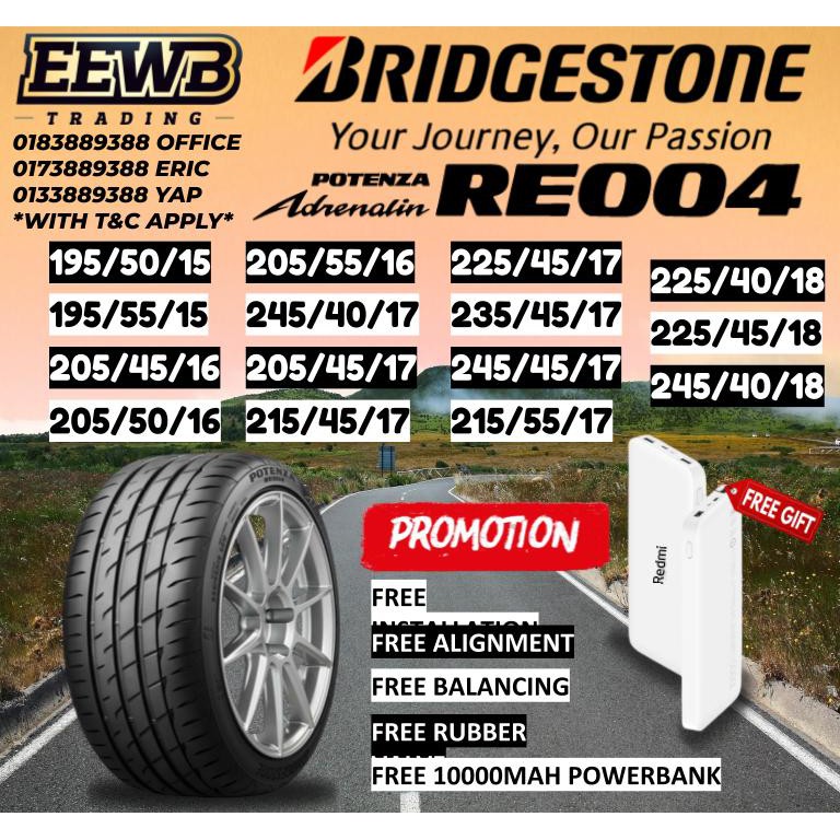 Tayar baru 1955015 Bridgestone Potenza re004. Bridgestone Tires Are Engineered To Perform Best When You Need It Most. Complement your SUV with the all-new ALENZA 001 to bring out the best in your dynamic driving experience.